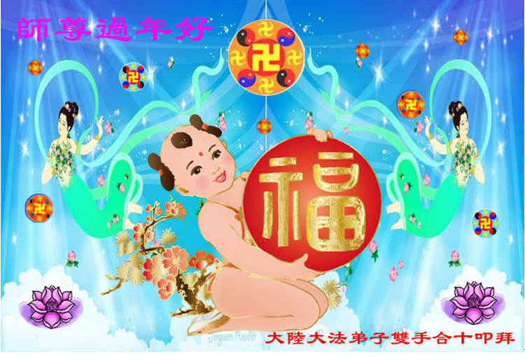在辞旧迎新之际,作为大法弟子我向师父拜年,我一定在新的一年里做好三件事,旧的一年里做到的以后一定坚持,没做好的一定努力去做好。请师父放心! 我代表我和我家人同修、我的亲戚同修向师父说:师父过年好! 谢谢师父! 大连大法弟子 大陆大法弟子恭祝师父过年好!