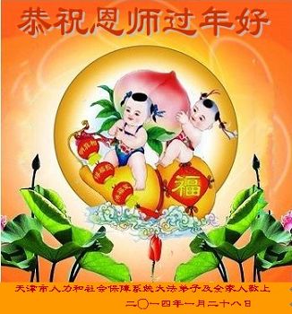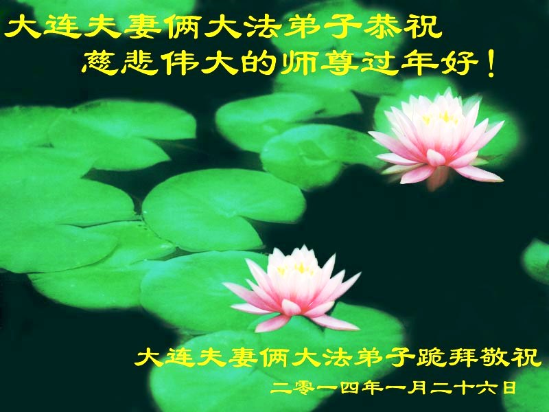 大连三个学法小组共九名大法弟子跪拜恭祝 二零一四年一月二十六日 河南全体大法弟子祝师父新年快乐!