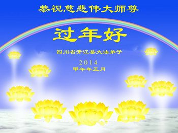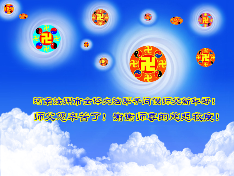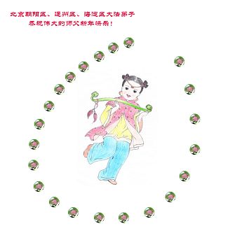 天地两茫茫 何处是故乡 缤纷法轮现 回归有方向 慈悲伟大的师尊,过年好!是您唤醒我们的本性,是您引导我们启航驶向生命的彼岸。航行过程中您呕心沥血庇护着我们免遭邪魔的算计迫害。而今,我们的法船即将到岸,我们一定利用工作之便智慧的向学生们讲清真相,揭穿共产邪魔的欺世谎言,助师救度一切可救度的生命。 敬拜师尊! 江苏省高教系统全体大法弟子 二零一四年元月 黑龙江省佳木斯一个九岁大法小弟子恭祝师尊新年快乐!