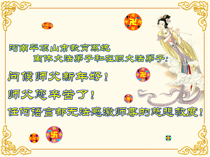 河南平顶山市教育界大法弟子祝师父新年快乐!