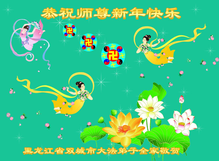 黑龙江省哈尔滨市双城市大法弟子恭祝师尊新年快乐!