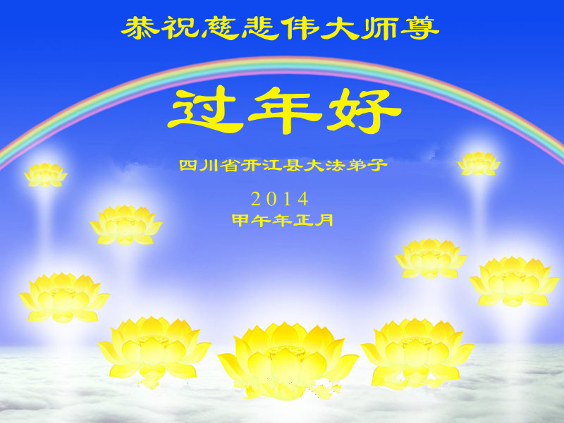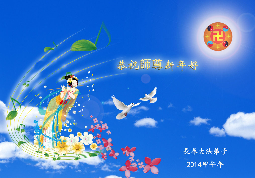 佛光普照寰瀛 天地万物更新 败物残渣荡尽 沐浴新宇晨曦 慈悲伟大的师父,您好!回首走过的正法修炼之路,更加能明察天象变化下的人间局势。我们正法弟子是多么荣幸,能与您同在人世,助师正法、救度众生!正法修炼的路就要走完,我们南京十四所全体大法弟子有决心有信心稳健的走好最后的路,弥补过去的不足,向师尊呈交一份优秀的答卷。 恭谢师尊慈悲救度! 南京十四所全体大法弟子 二零一四年元月 吉林省长春大法弟子恭祝师尊新年好!