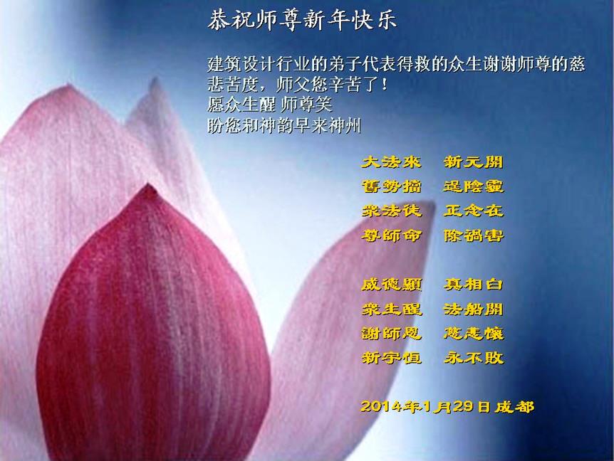 建筑设计行业的弟子代表得救的众生谢谢师尊的慈悲苦度,师父您辛苦了! 黑龙江省哈尔滨市双城市农村大法弟子恭祝师尊新年快乐!