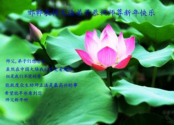 在这新年喜庆的日子里,每个大法弟子都无比想念伟大的师尊。这里虽是严冬,助师正法从来没有停,讲真相救众生是我们大法弟子的责任。请师尊放心,我们会不断的努力做好师尊所要的,什么样的严酷也不会把法徒证实法的脚步阻停。 辽宁省大连一大法弟子祝师父过年快乐!