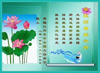 在师尊的慈悲呵护下我们又走过了 一年,在新的一年里我们一定不辜负师尊的期望,静心学法去执着,认真做好三件事,抓紧时间多救人,兑现我们的史前大愿。 黑龙江省哈尔滨市尚志市全体大法弟子恭祝师尊新年好!