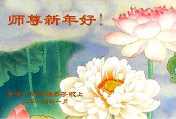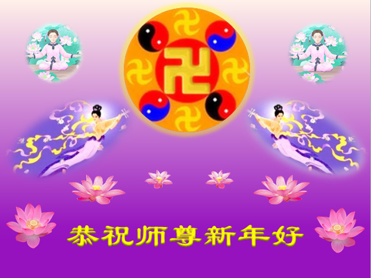 同修共勉 远隔重洋如眼前, 叩拜师尊过新年! 光阴飞逝莫迟延, 经书常读记心田; 风雨兼程还誓愿, 修心升华谢师尊! 未忘师训多救人, 酷暑严寒步步坚! 广东省广州大法弟子恭祝慈悲伟大的师尊新年快乐!