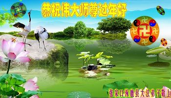 我们全家给师尊拜年!恭祝慈悲伟大的师尊过年好!师尊您辛苦了,弟子想念师尊,向慈悲伟大的师尊合十!叩拜! 河北省张家口地区赤城县两名大法弟子代表俩个学法小组恭祝师尊新年好!