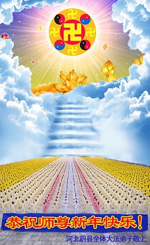 师尊:过年好!谢谢师尊的慈悲苦度。 河北张家口崇礼县高家营镇全体大法弟子恭祝慈悲伟大的师尊新年快乐!