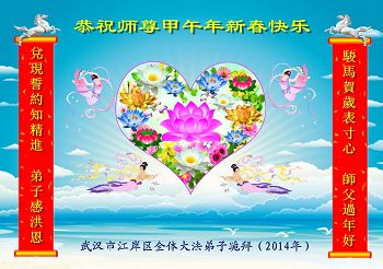 修好自己,做好三件事,不辜负师父的慈悲苦度。 武汉市江汉区滨江全体大法弟子敬上 二零一四年一月二十八日 湖北省武汉市武昌一大法弟子给师尊拜年!恭祝师尊新年好!恭祝师尊新年快乐!