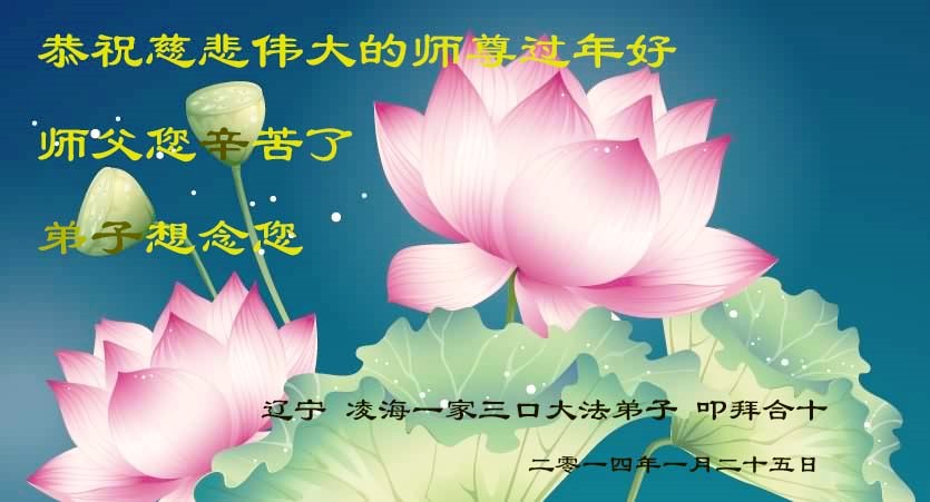 辽宁省黑山县一大法弟子全家敬上 二零一四年一月二十七日 辽宁省锦州市一名青年大法弟子给师父拜年!
