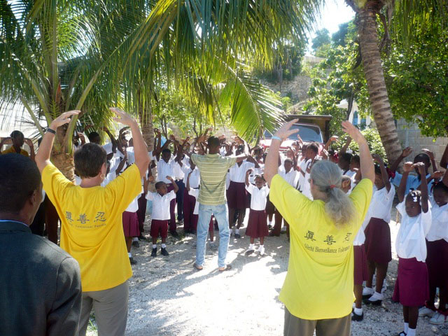 图8:海地的成人和孩童学炼法轮功 (二零一二年) |