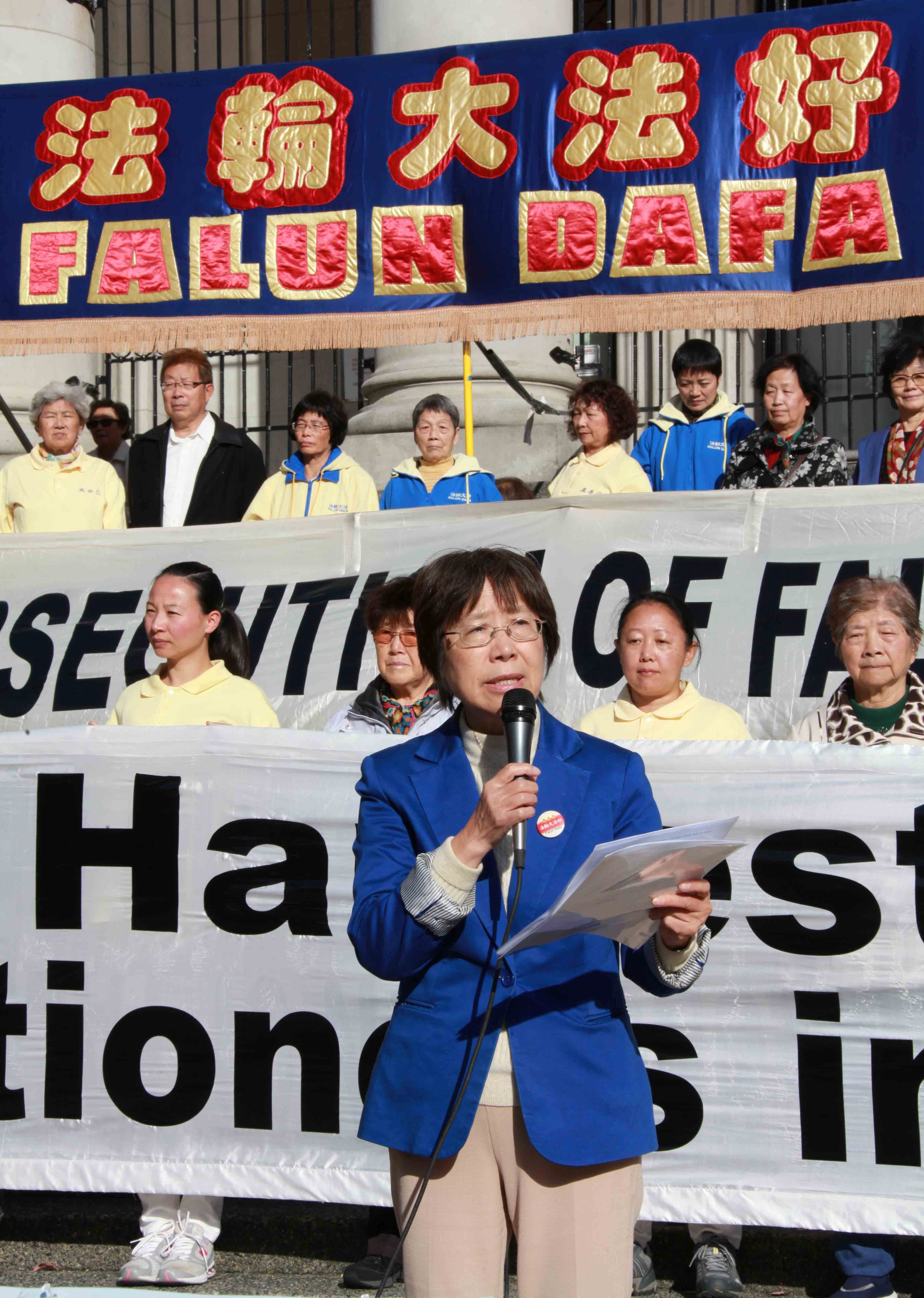 温哥华法轮功学员代表张素在集会上发言,她表示,中共对法轮功的迫害已持续了十五年,酷刑折磨,洗脑,甚至活摘器官等,罪恶滔天。历史将淘汰中共,希望加政府继续站在正义一边。在过去的两年内,中共官员中积极迫害法轮功的元凶周永康、李东生等被相继被拘捕,说明迫害元凶正在遭受报应。在历史的关键时刻,西方国家政要的正义呼声会产生很大影响。 Alice张:警察威胁“我要摘你的肺” 温哥华居民Alice张的母亲唐华峰因不放弃修炼法轮功,于二零零六年三月被中共当局非法劳教二年,今年初又再次被非法关押,至今仍在看守所,已超过八个月。 Alice在集会上介绍了母亲因修炼法轮功而身心重获健康的经历,以及二零零六年被非法劳教所遭受的迫害。今年初唐华峰被非法抓捕后的遭遇更令人忧心:“二零一四年二月二十二日,我的母亲到另一位法轮功学员家拜年,在楼下等的时候,窜出七、八个警察,将她围住,问她是否刚才给那位同修打电话,其中一警察大声问她叫什么名字,她没回答,警察就把她塞进警车。一警察申建军边塞还边狂叫:‘我要摘你的心,再摘你的肝,摘你的肾。’上车后一警察又说:‘我就摘你的肺,一片肺叶就行。’” “她被绑架到榆次城区公安分局地下室,警察审问了她四、五个小时,一整天没给饭吃。警察还抄了我们家,抄走了法轮功师父法像和大法书籍。我的母亲在晋中市拘留所被非法关押到第三天时,城区国保警察周洁、吕某带她到市医院体检、验血,然后把她关进晋中市看守所。在非法关押期间,她一度出现心脏病症。” 李涛:母亲多次被绑架并判刑 温哥华居民李涛的母亲,法轮功学员邢爱香曾多次被中共非法绑架、抄家、判刑,家属也遭到敲诈和恐吓。二零一一年十二月,她再次被关进看守所。郑州市公检法不允许家属聘请律师,进行非法开庭,二零一三年二月判邢爱香三年徒刑。 李涛说:“我母亲被非法关押在新乡女子监狱期间,由于饮食太差,环境又脏,又闷又热,十几个人每天吃饭、睡觉、大小便全在一间屋子里,天天被强迫劳动干活。我母亲因遭迫害,体检时血压高达200,出现血压过高症状,导致她的身体状况越来越差,恶警封锁消息,阻挠亲友看望,还打骂、恐吓我的家 人。” 他写道:“中共对法轮功的迫害已有十五年之久,对修炼‘真、善、忍’的好人的残酷迫害必须停止。请总理在这次访问中国时,能对中共主席习*近*平及其他有关人员晓之以理,制止这场邪恶的迫害,释放所有被关的学员,释放我的妈妈。” 温哥华民众纷纷签名支持法轮功 温哥华市居民David Anderson表示,他知道加拿大总理哈珀马上去中国。他现场在明信片上签名,呼吁哈珀在中国访问时,提出有关法轮功的人权问题。  Stefun von Sayn是卑诗科洛拉人,首次听到活摘器官的事,感到非常震惊 |
