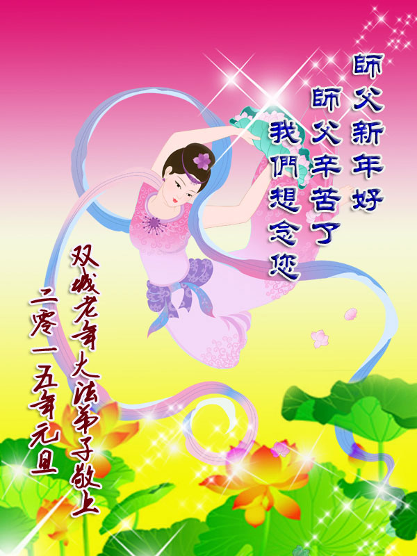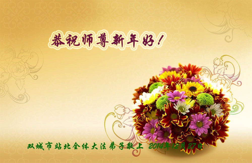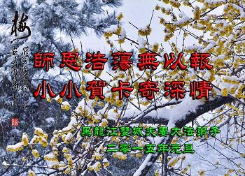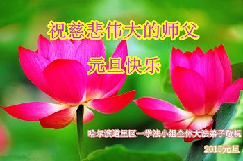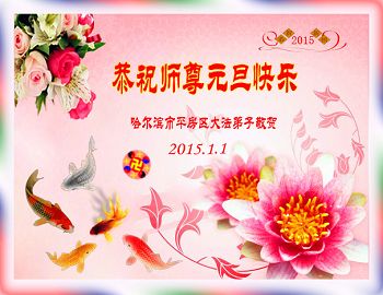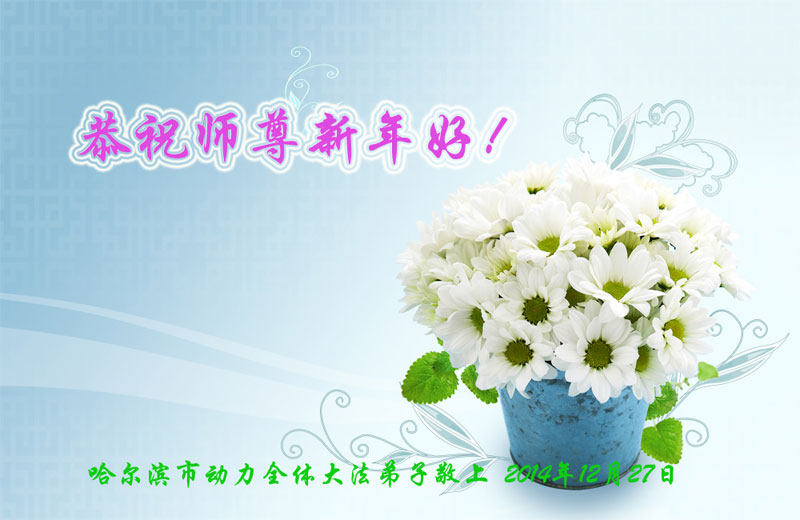 在新的一年里,我们决心要学好法,修好自己,走正路,做师父所要的,默默圆容整体,多救人,让师父多一些欣慰,少一些操劳,惟愿师尊笑! 黑龙江省哈尔滨道里区FSJ大法弟子敬祝恩师新年好!