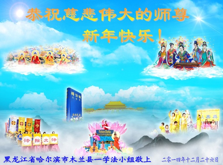 黑龙江省哈尔滨市木兰县一学法小组恭祝慈悲伟大的师尊新年快乐!