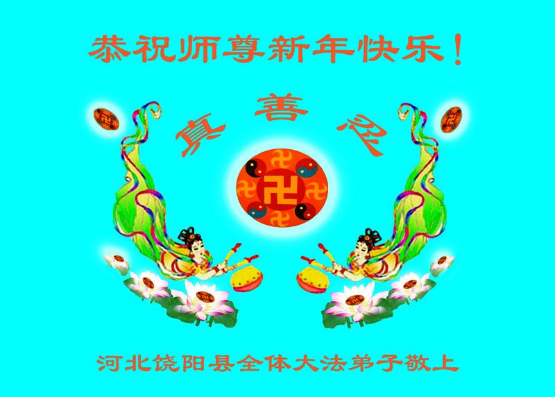 末劫红潮,风雨飘摇。 民不聊生,黑白颠倒。 大法救世,拖年延朝。 佛恩浩荡,尽言难表。 助师正法,誓约却了。 河北省衡水市饶阳县全体大法弟子叩拜师尊新年快乐!