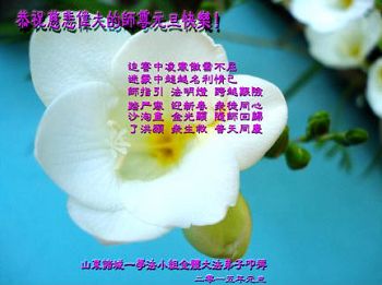 山东省潍坊市高密市一学法小组的大法弟子向师父问好!祝师父元旦快乐!