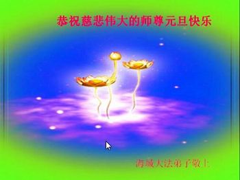恭祝师尊元旦快乐!师尊辛苦了! 伴随着助师正法的匆匆的步伐,我们又迎来了新一年的伊始。些许的感触、无尽的感恩化一句:慈悲伟大的师尊辛苦了!弟子一定听师尊的话,不断的归正自己,纯净自己,救度更多的有缘人。 二零一四年一十二月二十六日 辽宁省抚顺市新宾县大法弟子恭贺伟大师尊新年快乐!