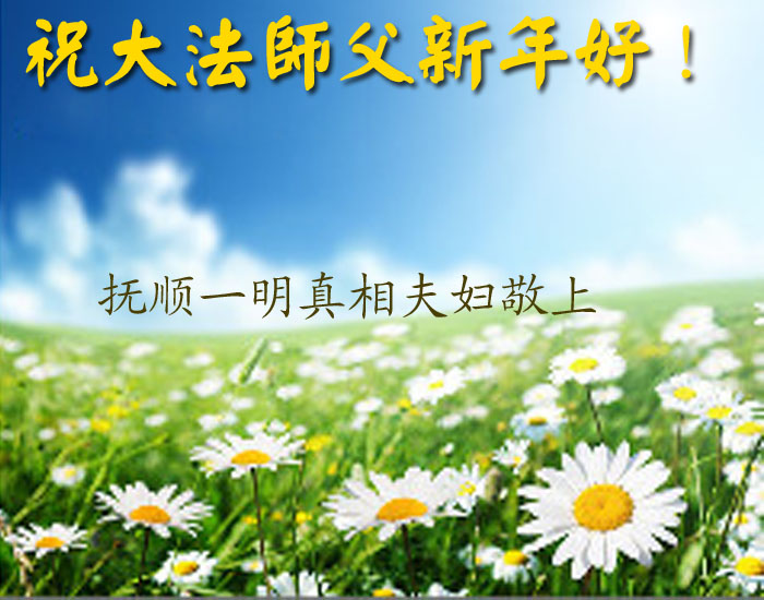 孤岛镇大法弟子 辽宁省抚顺市一明真相夫妇祝大法师父新年好!