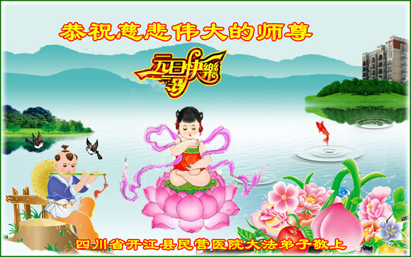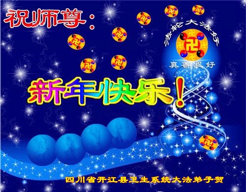 四川省达州市开江县卫生系统一大法弟子恭祝师尊新年快乐!