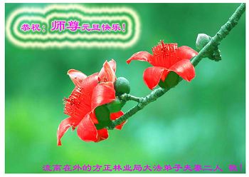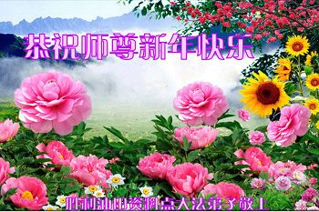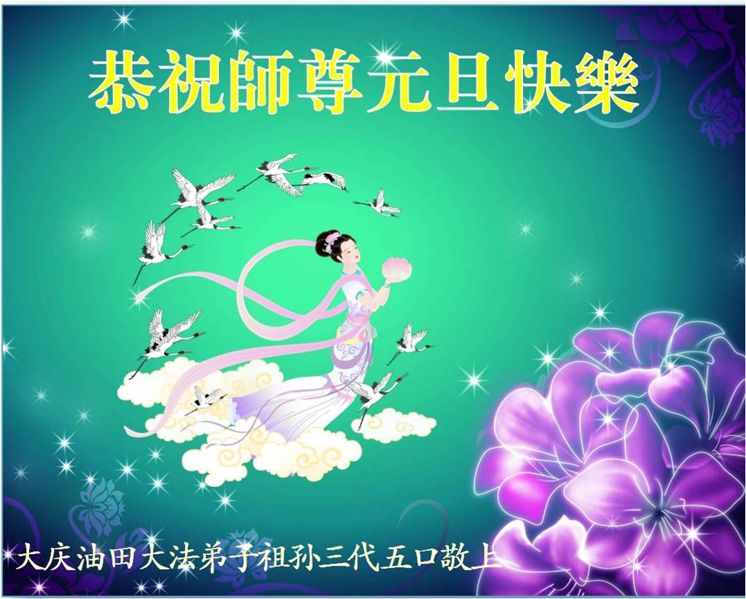 恭祝:师尊元旦快乐! 这几年始终做的不太好,每次向师尊问候时,都不敢向师尊说什么,这次弟子鼓起勇气向师尊保证,在新的一年里我们夫妻二人一定精進实修,让师尊少一分操劳多一份欣慰! 流离在外的方正林业局大法弟子夫妻二人敬! 黑龙江省大庆油田大法弟子祖孙三代五口恭祝师尊元旦快乐!