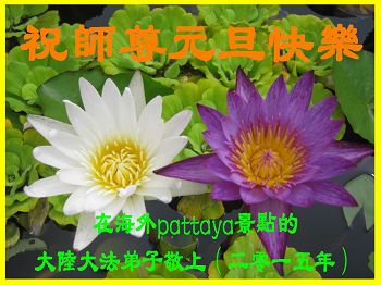 在海外景点的大陆大法弟子祝师尊元旦快乐! 在新的一年里,我们更要修好自己,在师尊安排的路上多去执着心,不走旧势力安排的以恶制恶的路。多救人,救人是第一位的。谢谢师尊给我延长来的生命,弟子一定珍惜这万古的正法修炼机缘!合十 在海外景点pattaya的大陆大法弟子敬上 二零一四年十二月二十七日 全球电话组手动广播平台全体大法弟子恭祝慈悲伟大的师父新年好!