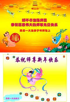 我和我的外孙女,您的小弟子,向慈悲伟大的师尊问好!恭祝师尊元旦快乐!新年快乐! 在修炼的路上,我一定修好自己并带好小弟子,去掉自身所有常人的执着心。在新的一年里,心清似玉,做好三件事,让师尊高兴!让师尊快乐! 来新西兰二个多月的大法弟子敬贺 在新西兰留学的大陆大法弟子及其家属弟子祝慈悲伟大的师父新年好!