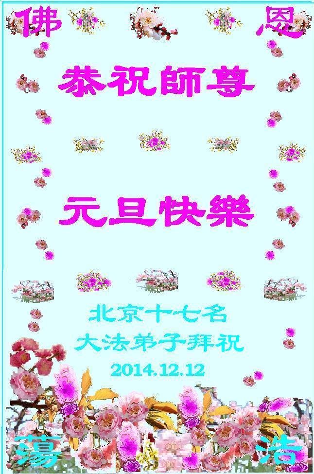 【明慧网二零一四年十二月三十一日】 北京十七名大法弟子恭祝师尊元旦快乐!