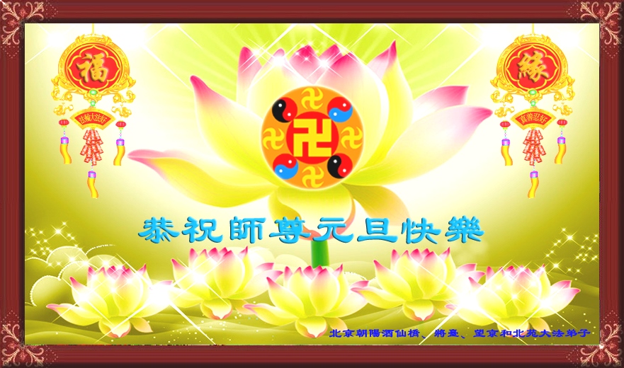 北京大法弟子恭祝慈悲伟大的师尊新年快乐!
