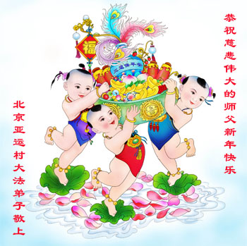 北京亚运村大法弟子恭祝慈悲伟大的师尊新年快乐!