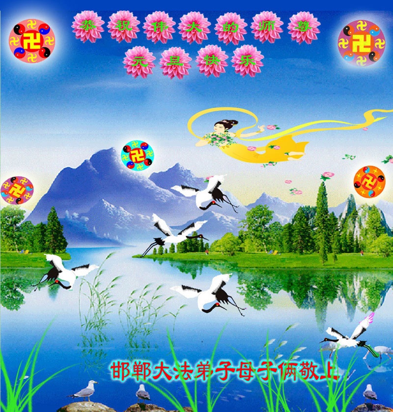 河北省邯郸大法弟子母子恭祝伟大的师尊元旦快乐!