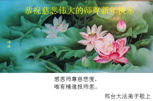 弟子一定谨记师父教诲,在新的一年里多学法,修好自己,多救人,请师父放心。弟子叩谢师尊的救度之恩! 河北大法弟子恭贺伟大的师尊元旦快乐!