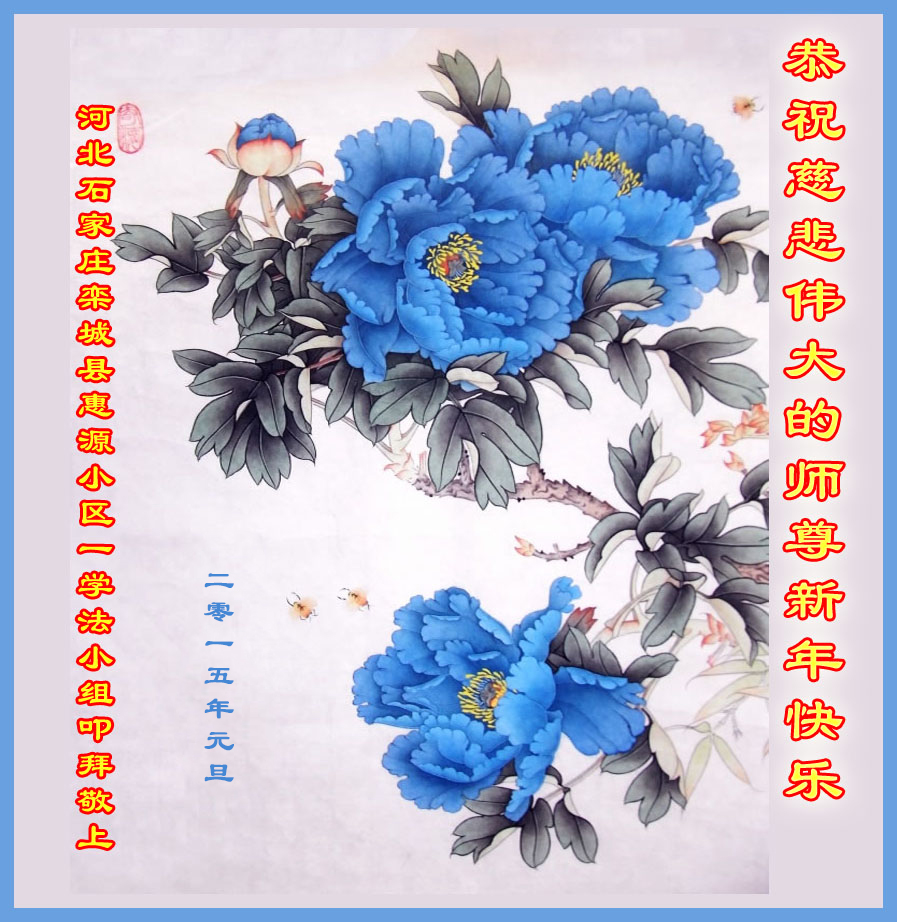 二零一五年即将来临,建明小区全体 大法弟子向师尊问好!恭祝师尊元旦快乐! 在新的一年里精進再精進,兑现誓约,跟师尊回家! 石家庄建明小区全体大法弟子贺 河北省石家庄市赞皇县全体大法弟子祝师父元旦快乐!