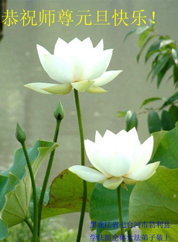 黑龙江省七台河市桃山区一家大法弟子及未修炼的常人恭祝师父元旦快乐!
