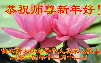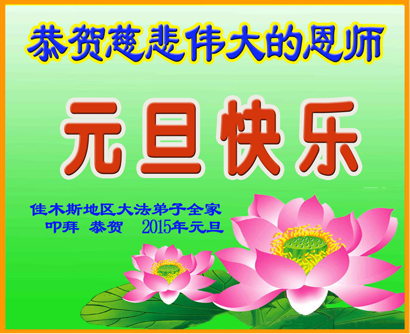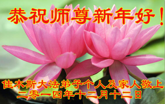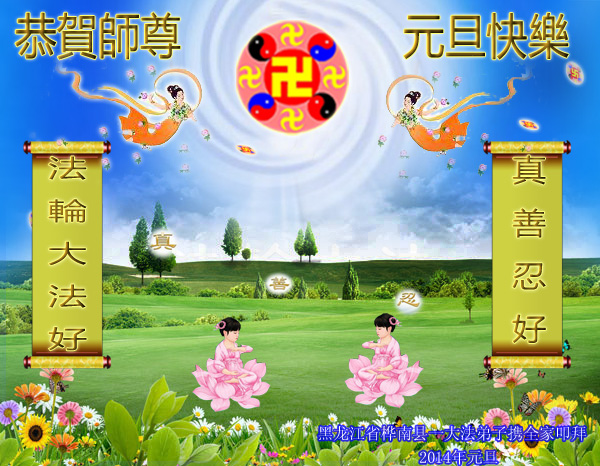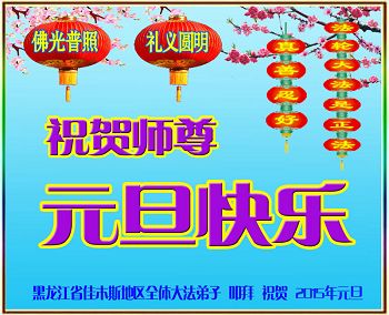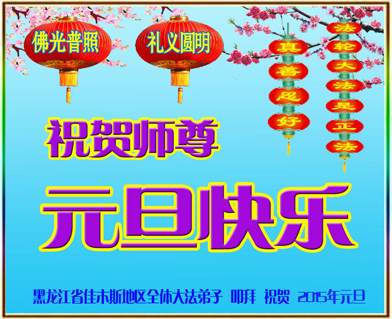 【明慧网二零一四年十二月三十一日】 黑龙江省佳木斯市桦南县一大法弟子携全家恭贺师尊元旦快乐!
