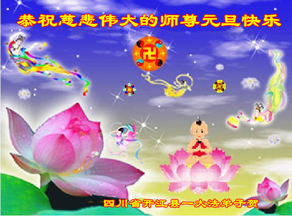 四川省泸州地区四县三区(叙永、古蔺、合江、泸县;江阳区、龙马潭区、纳溪区)的全体大法弟子恭祝慈悲伟大的师父元旦快乐!