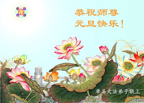我们夫妻同修携全家八口恭祝伟大的师尊元旦快乐!我们一定精進做好三件事,不负师尊的期望! 山东菏泽单县资料点大法弟子恭祝师尊元旦愉快!