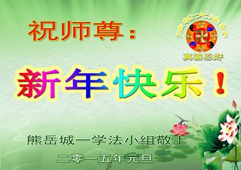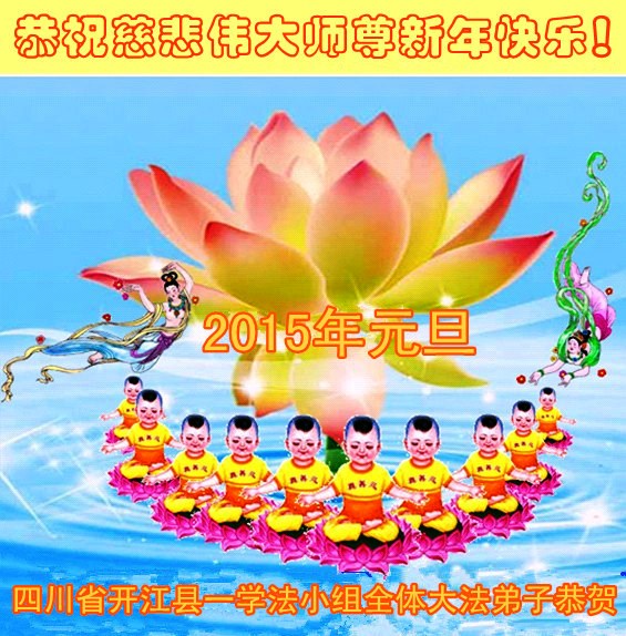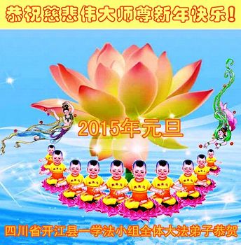 【明慧网二零一四年十二月三十一日】 四川省达州市开江县一学法小组全体大法弟子恭祝慈悲伟大师尊元旦快乐!