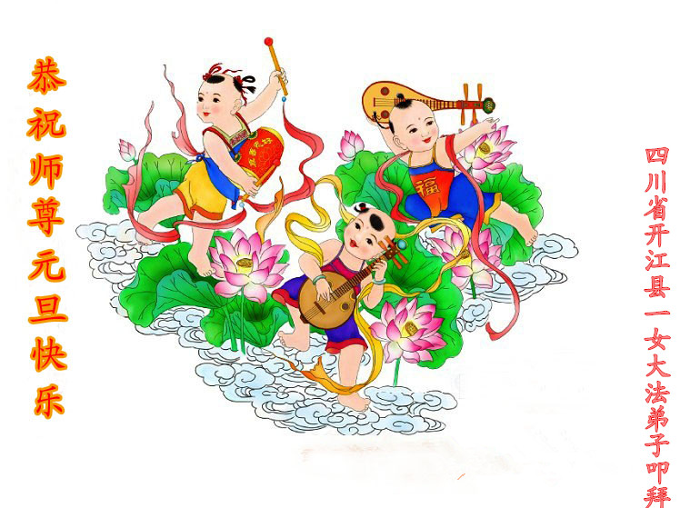 四川省(德阳市)什邡市全家大法弟子敬上 大陆一大法弟子祝师尊元旦快乐!