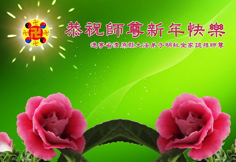 敬爱的师尊: 祝您新年快乐!您为了大法弟子、为宇宙众生操碎了心、吃尽了苦,我们无限感谢您! 我们非常想念您!我们热切盼望着早日在大陆与您团聚、听您讲法! 我们要努力做好“三件事”,去迎接新纪元! 灵寿县全体大法弟子叩上! 大陆大法弟子恭祝慈悲伟大的师尊元旦快乐!新年快乐!