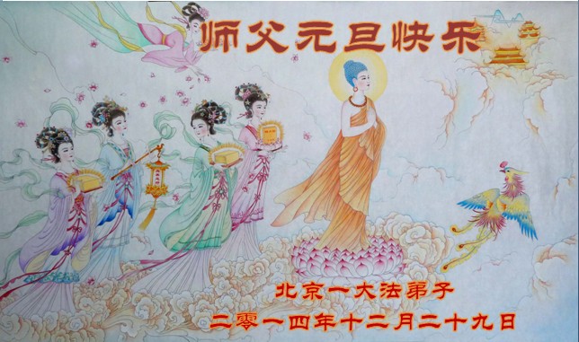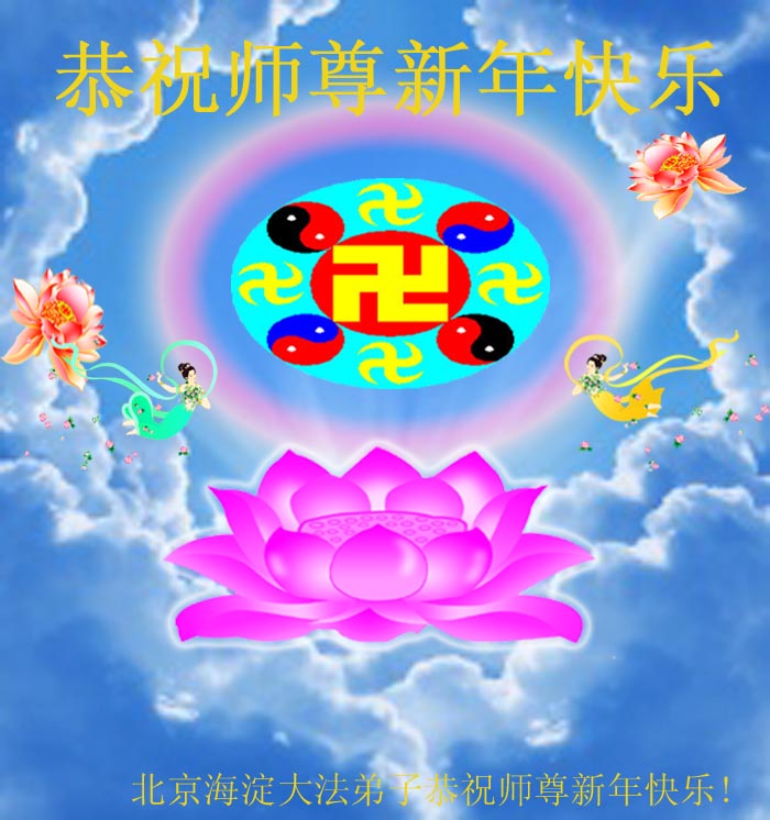 弟子们愿在新的一年里,为师尊增添无比的欣慰和快乐! 北京市海淀区大法弟子恭祝师尊元旦愉快!