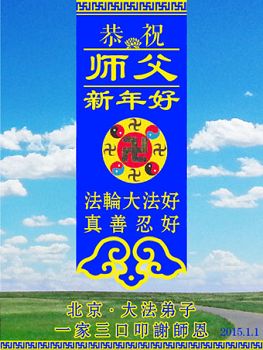 我们要做好三件事,随师回家园。 2014年12月29日 北京大法弟子一家祝师父元旦快乐!