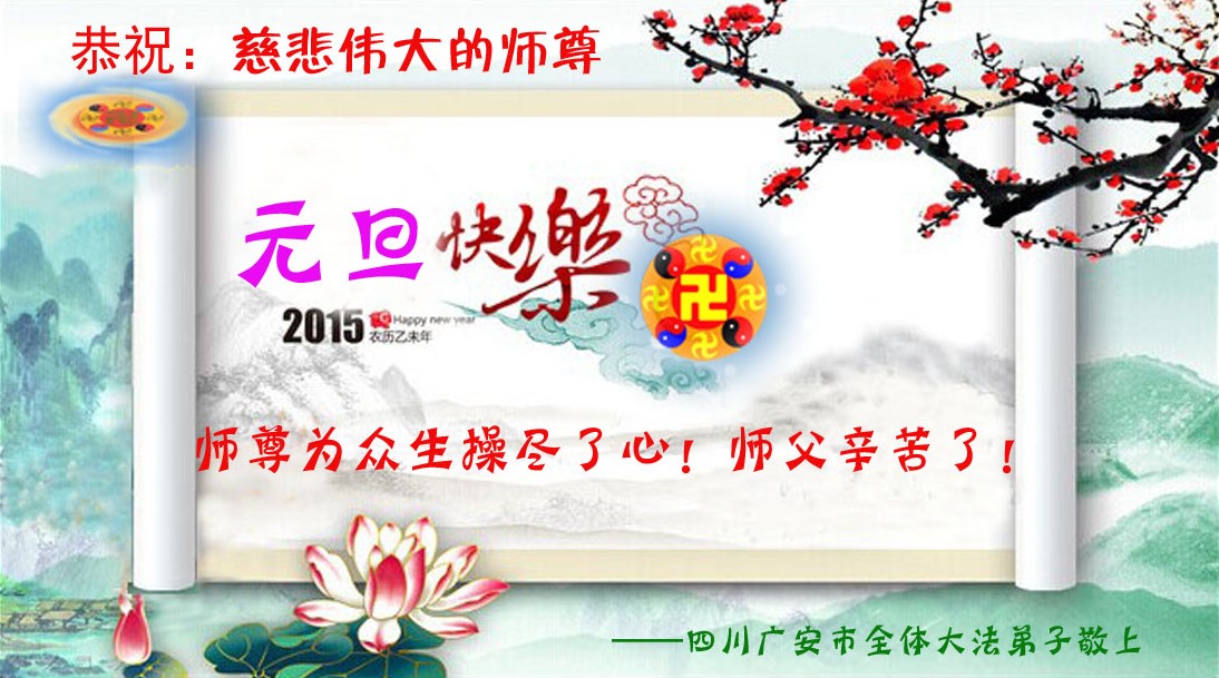 【明慧网二零一四年十二月三十一日】 四川省德阳市广汉市全体大法弟子恭祝师父元旦快乐!