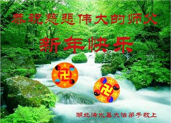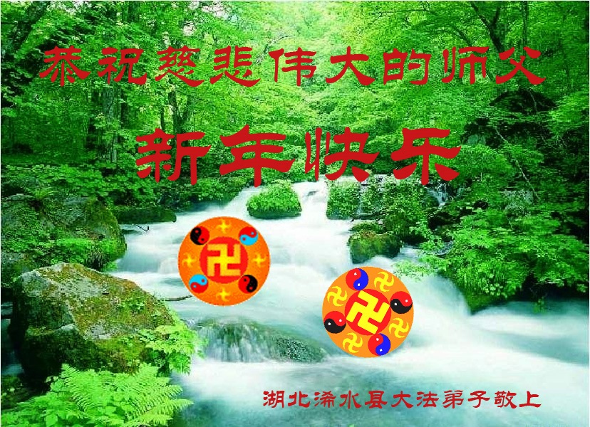 湖北浠水大法弟子向慈悲伟大的师父问候新年好!