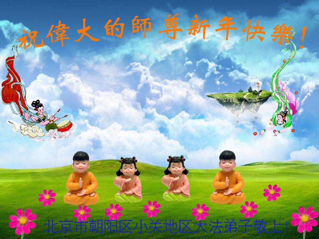 师父,您好!师父,您辛苦了! 弟子们祝慈悲伟大的师父新年快乐! 北京市朝阳区小关地区大法弟子及家属恭祝伟大的师尊新年好!