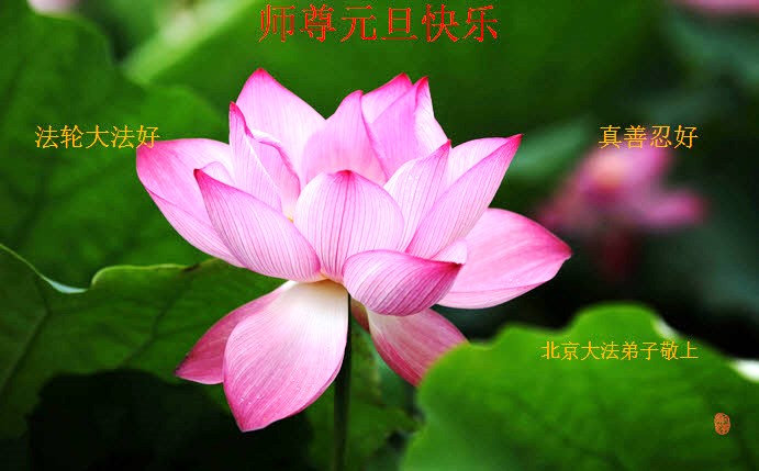 师尊您好: 恭祝慈悲伟大的师尊新年好!弟子们想念您! 感恩师尊的慈悲苦度,更感恩师尊把这部宇宙大法普给我们,让满身泥污的我们得以洗净重生,弟子们会在新的一年里,更加努力做好三件事,多救人不辱使命。 北京大法弟子恭祝慈悲伟大的师父元旦快乐!