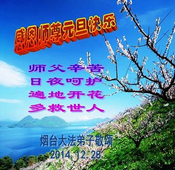 师父您好!您辛苦了! 弟子在师父您的慈悲呵护与点悟下又迎来了一个新年。在新的一年中,我们遇事向内找,修好自己,做好救人之事。 山东省烟台大法弟子恭祝慈悲伟大的师父2015年元旦快乐!