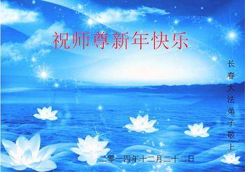 弟子在今后的修炼路上一定向内找、向内修、学好法精進实修。做好三件事,多救人,不再懈怠。不辜负师父的慈悲苦度! 弟子合十 2014年12月17日 吉林省长春大法弟子恭祝师尊新年快乐!