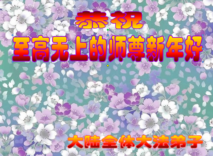 弟子无以回报师尊救度之恩。在这值千金、值万金转眼即逝的宝贵时光里,弟子唯有精進、再精進!做好三件事兑现史前誓约!做合格的大法粒子! 大陆一大法弟子怀着万分感恩的心情遥祝师尊新年好!