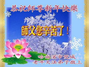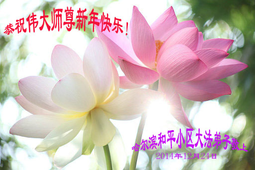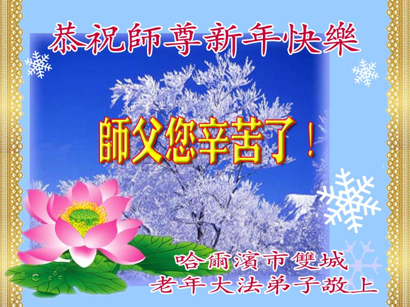 黑龙江省哈尔滨和平小区大法弟子恭祝伟大的师尊新年快乐!