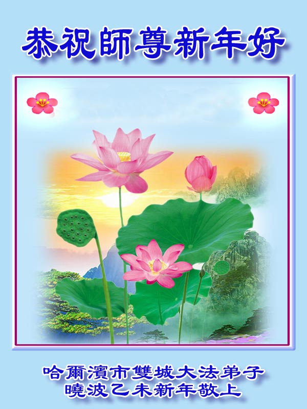 黑龙江省哈尔滨学法小组大法弟子恭祝慈悲伟大的师尊新年快乐!